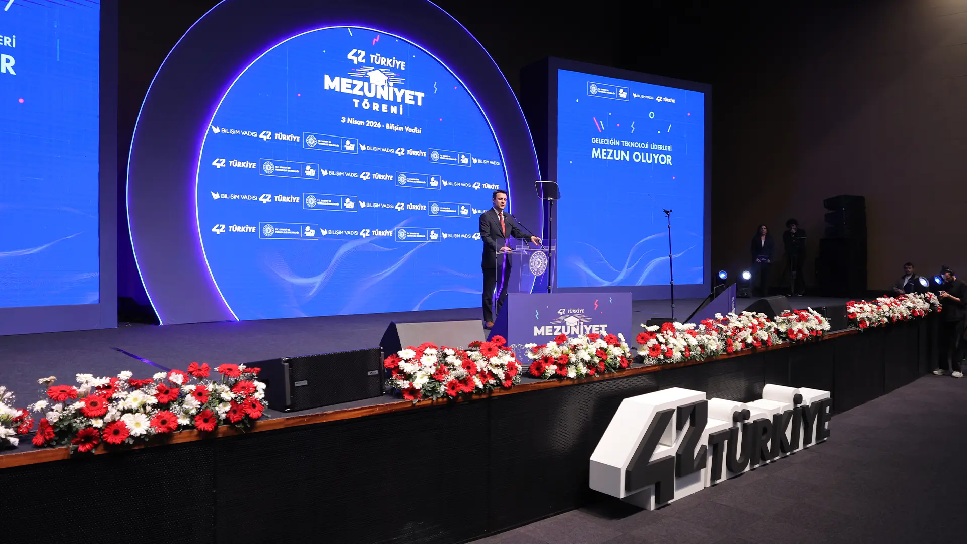 Sanayi ve Teknoloji Bakanı Mehmet Fatih Kacır’ın katılımıyla 42 Türkiye Mezuniyet Töreni gerçekleştirildi. Sanayi ve Teknoloji Bakanlığı himayesinde, Bilişim Vadisi yürütücülüğünde faaliyet gösteren 42 Türkiye Yazılım Okulları ilk mezunlarını verdi. Eğitmensiz, proje temelli ve akran öğrenmesine dayalı eğitim modelini başarıyla tamamlayan 400’ün üzerinde mezun, Türkiye’nin yazılım alanındaki nitelikli insan kaynağına ve Milli Teknoloji Hamlesi vizyonuna katkı sunuyor.